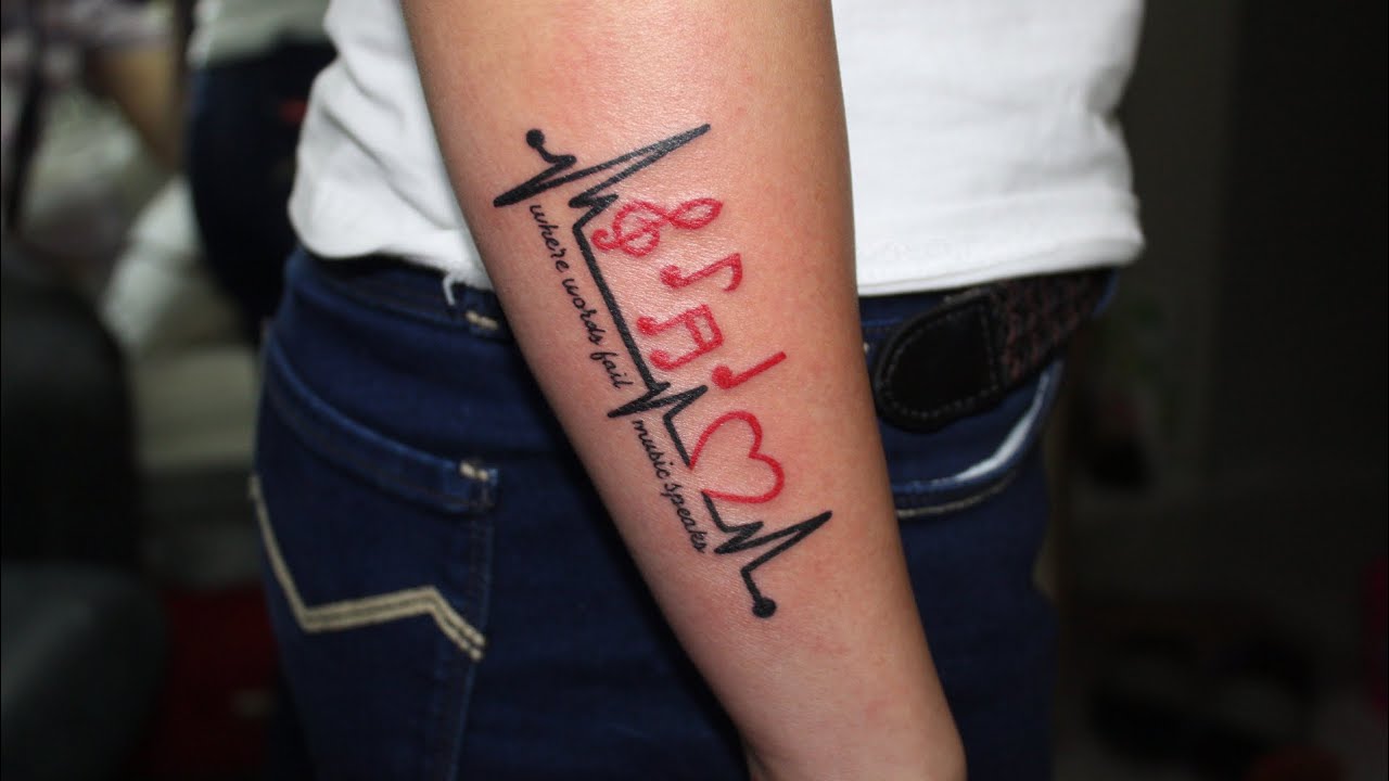 Where Words Fail Music Speaks Tattoos Tattoo Forearmtattoo Armtattoo Wristtattoo Heartbeat Blackworktattoo Blacktattoo